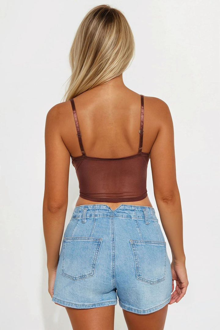 Clementine Mesh Rhinestone Cami Top - Brown