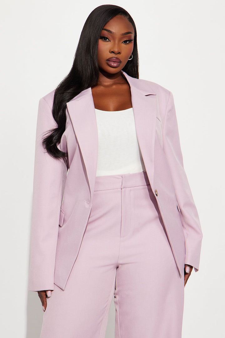 Available In Mocha And Pink. | Blazer | Lapel Collar | Long Sleeve | Crepe Woven | Button Closure | Fully Lined | Pair With "Close The Deal Wide Leg Trouser Pant" | Self: 95% Polyester 5% Spandex | Lining: 100% Polyester | Imported
