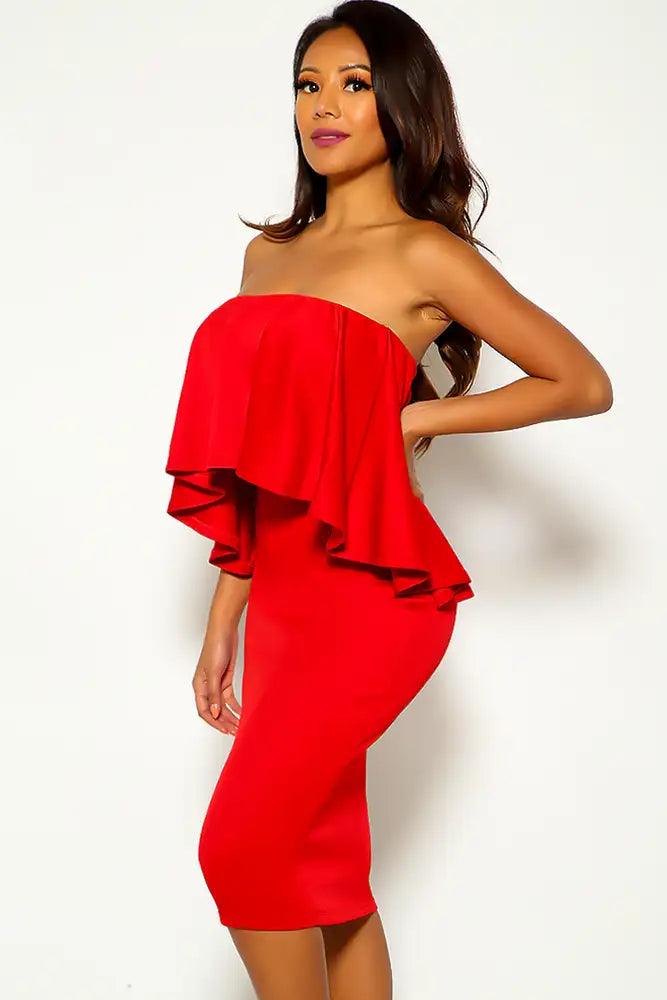 Pair this dress with your favorite heels! Featuring; strapless, ruffled, bodycon. Followed by a fitted wear, 90% polysester 10% spandex