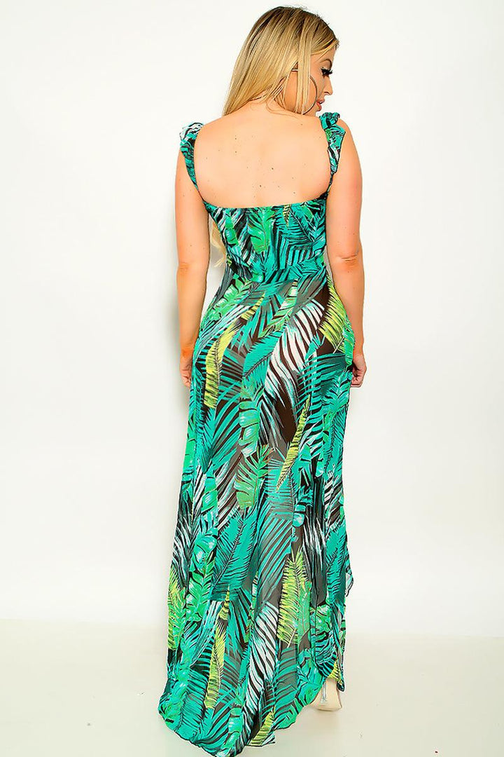Tropical Green Sheer High Slit Sexy Maxi Party Dress
