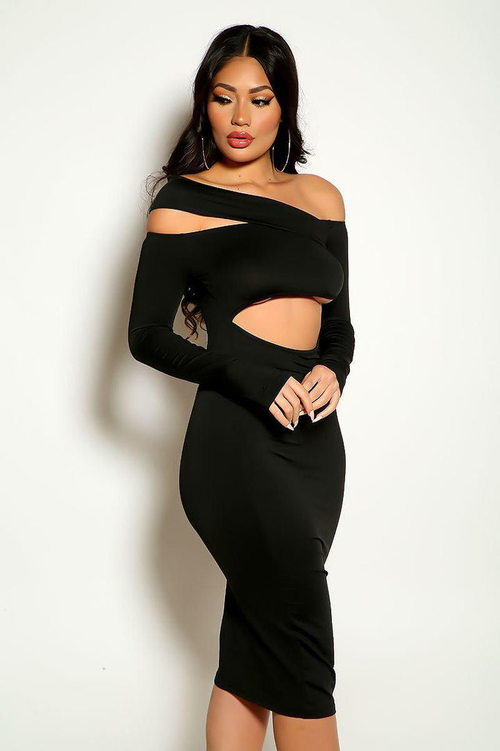 Black Off The Shoulder Long Sleeve Cut Out Knee Length Party Dress