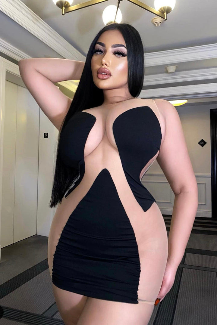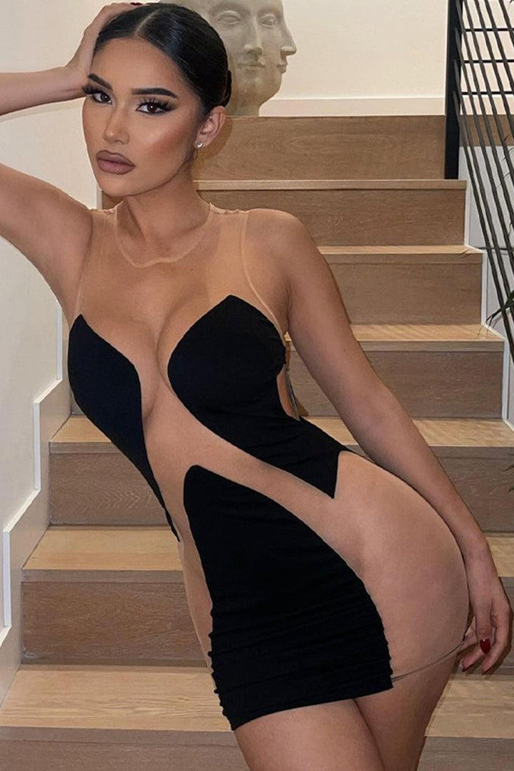 Black Nude Mesh Mini Design Detail Sexy Party Dress