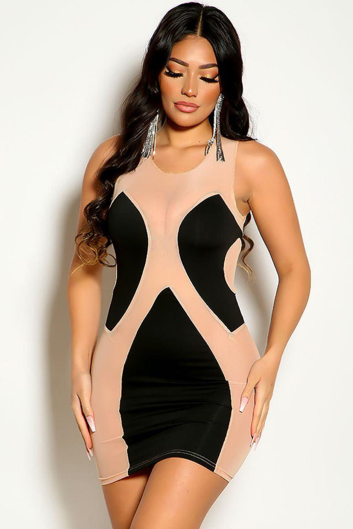 this sexy dress is fabulous to wear at a night out. Featuring; sleeveless, round neckline, opaque design detail. mesh, two tone. Followed by a fitted wear
