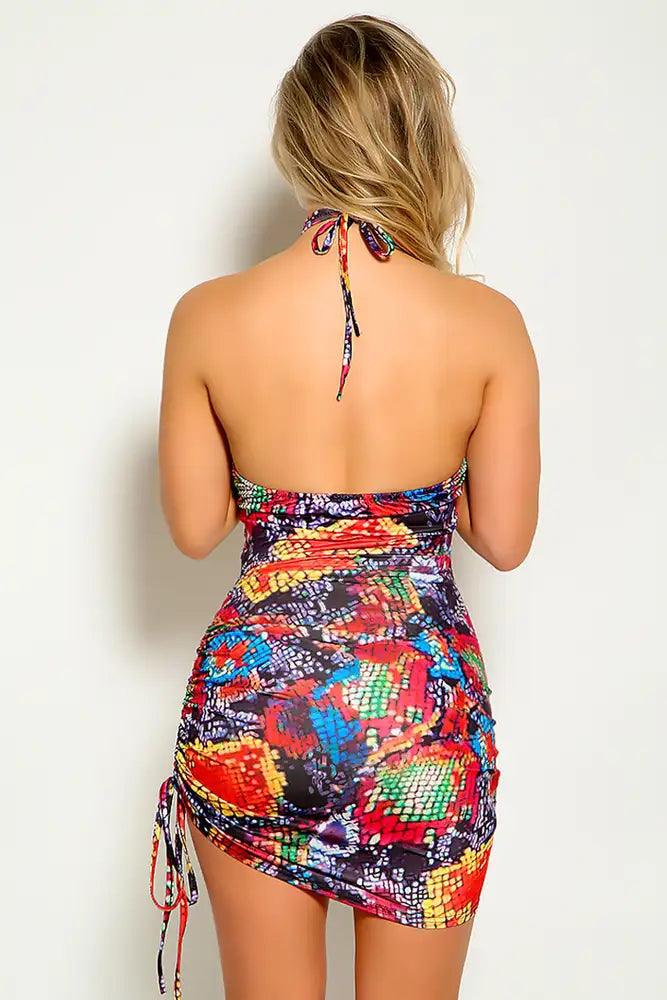 Rainbow Snake Cross Strap Cut Out Ruched Summer Dress