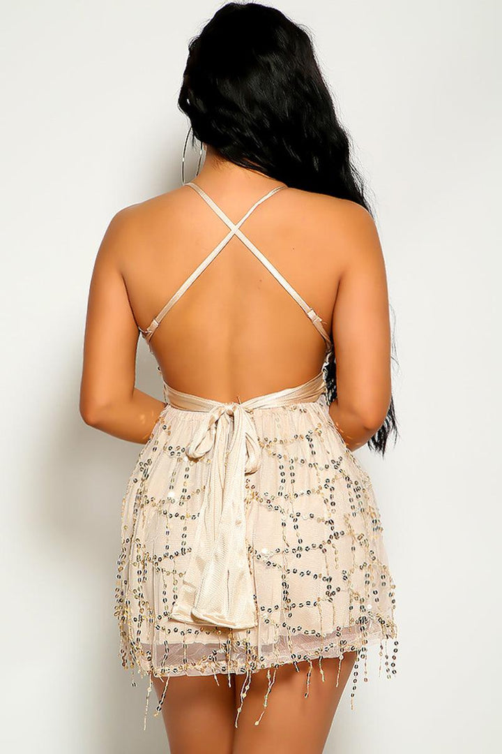 Rose Gold Fringe Sequin V-Cut Party Dress