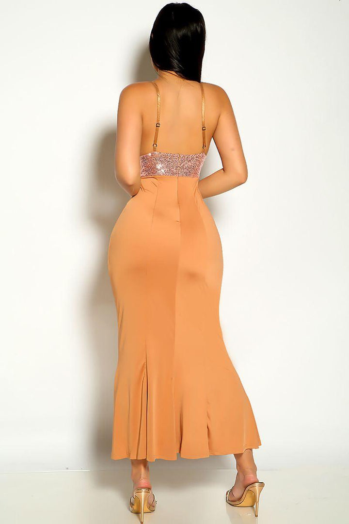 Beige Sleeveless Sequins Maxi Dress