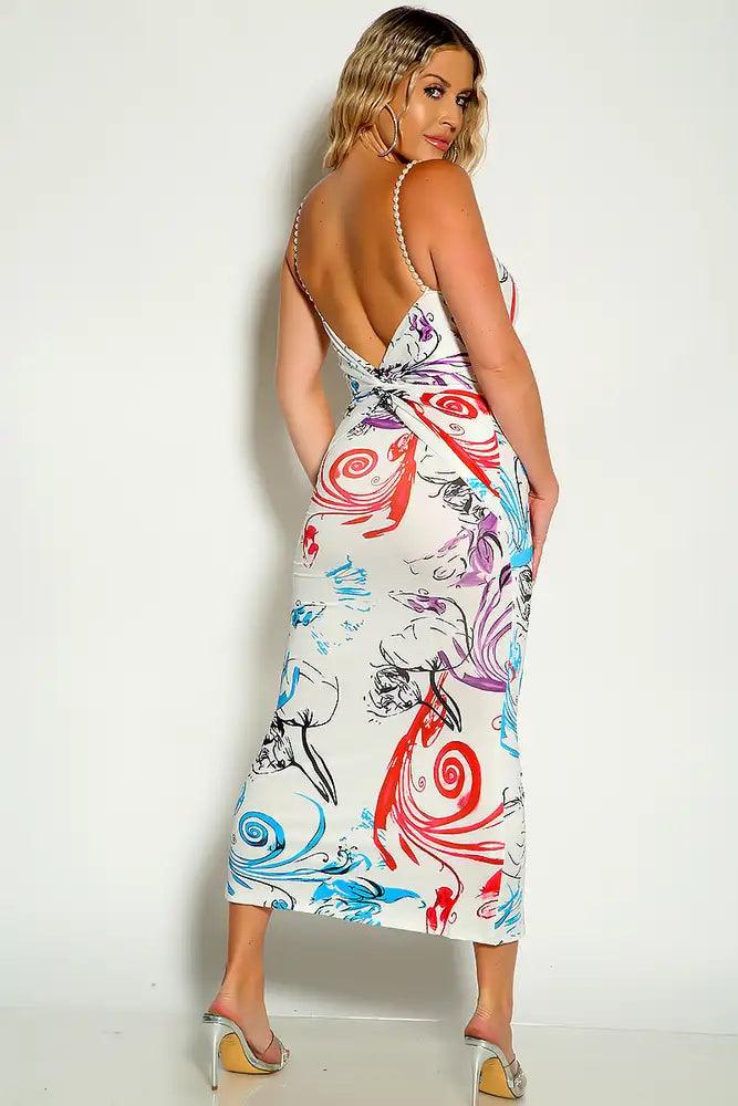 White Multi Pearl Sleeveless Detail Two Tone Midi Dress