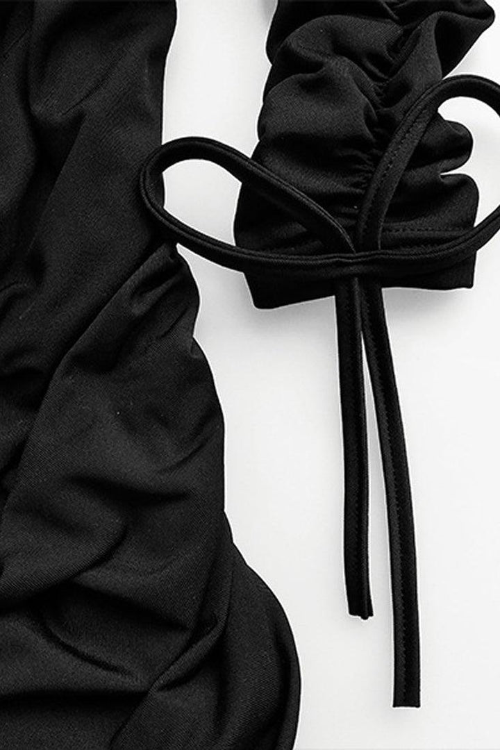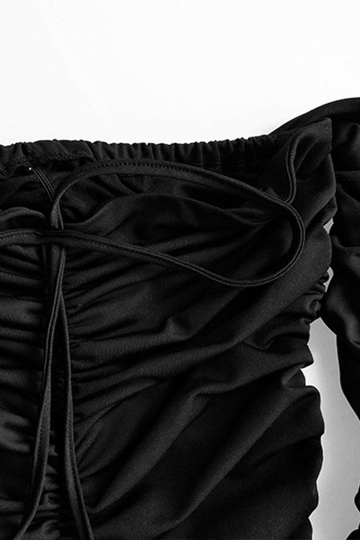 Black Ruched Off Shoulder Long Sleeve Dress FD6116