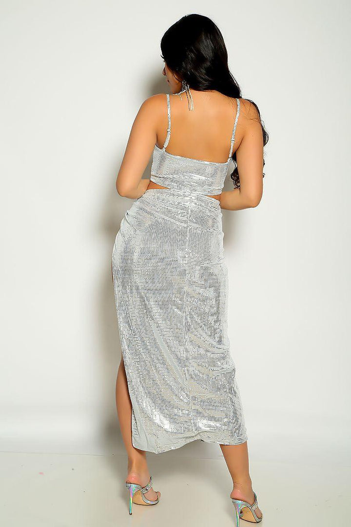 Silver Sleeveless Cropped Metallic Sequin Knotted Two Piece Dress