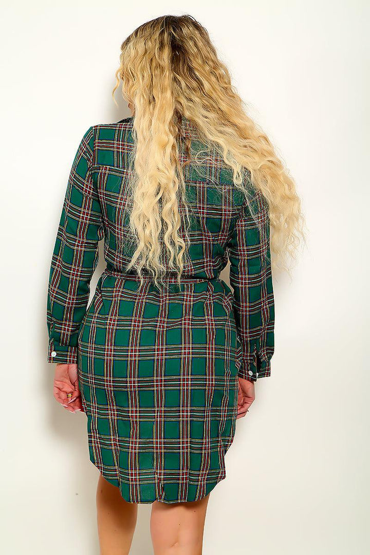 Slay in style in this sexy dress! Featuring; long sleeves, pointy collar, button up closure, red plaid design, asymmetrical hem, tie waist belt, followed by a fitted wear. Non Stretch.