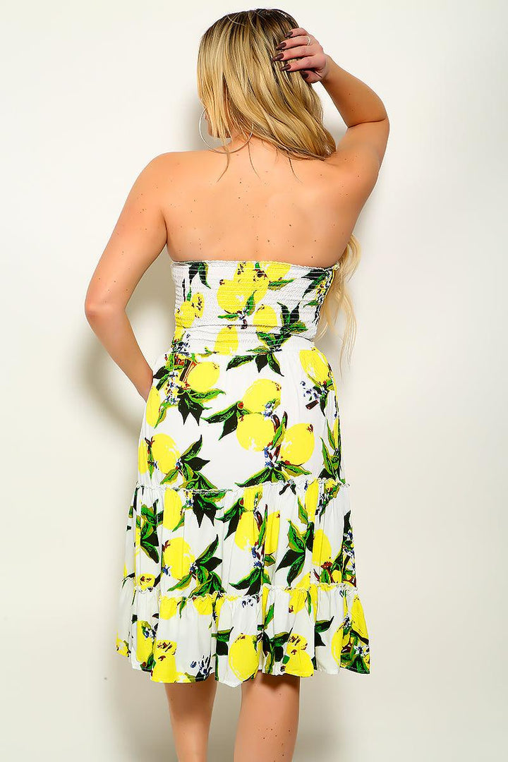 Turn up the heat this summer in this sexy dress! Featuring; strapless, elastic chest line, frill hem, loose, lemon print detail, followed by a comfy wear. Stretch Fit.