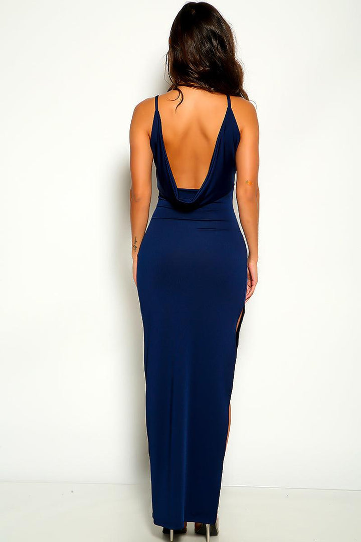 Navy Sleeveless Side Slit Sexy Maxi Dress