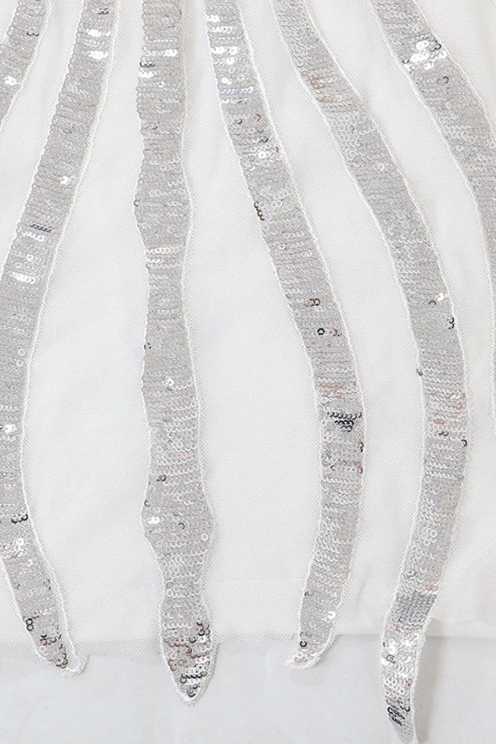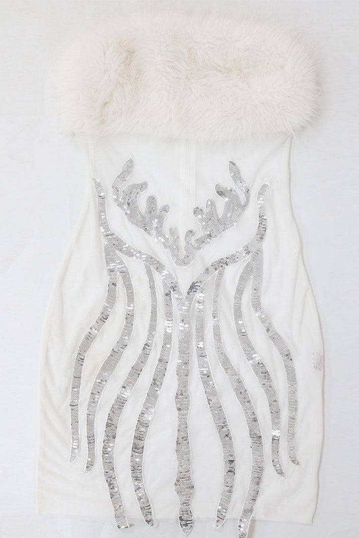 White Feather Sequins Strapless Mesh Sexy Party Holiday Dress