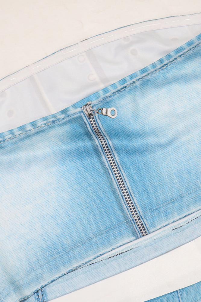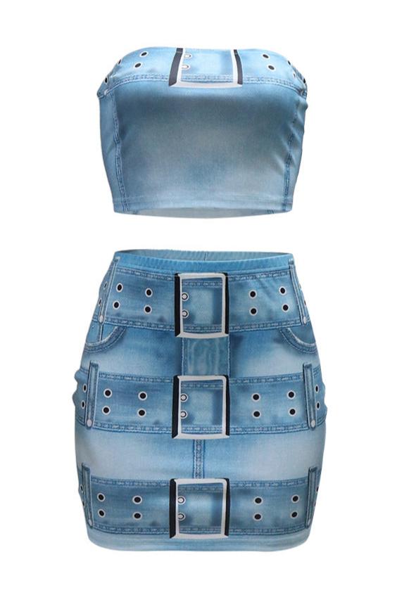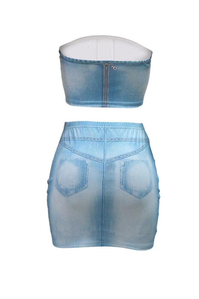 Blue Realistic Denim Print Sexy 2Pc Dress Outfit