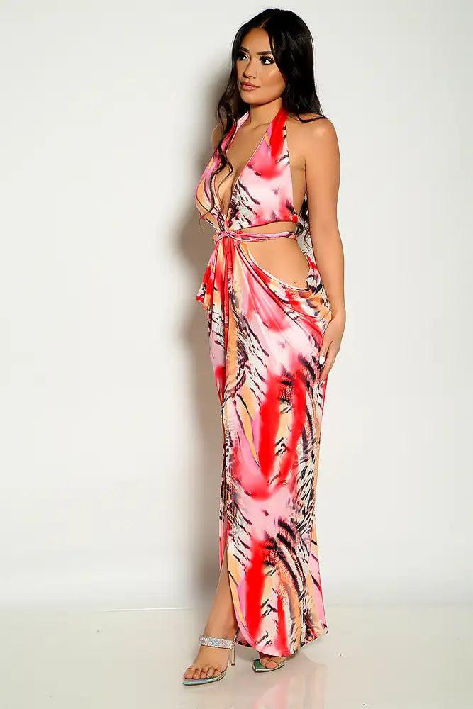 Red Floral Halter Cut Out Sexy Maxi Dress