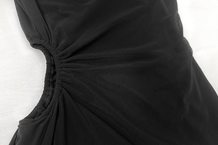 Black Mesh Long Sleeves Double Layer Cut-Out Sexy Party Dress