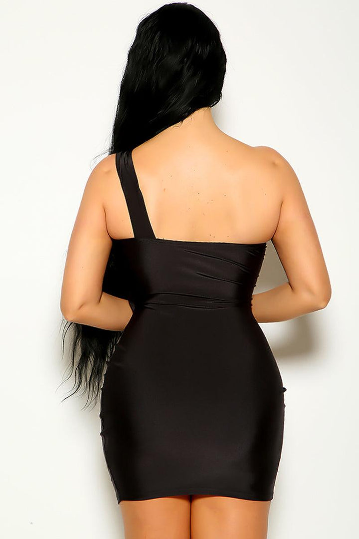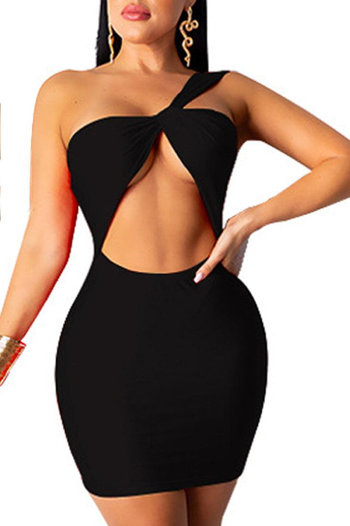 Black One Shoulder Cut Out Sexy Mini Party Dress