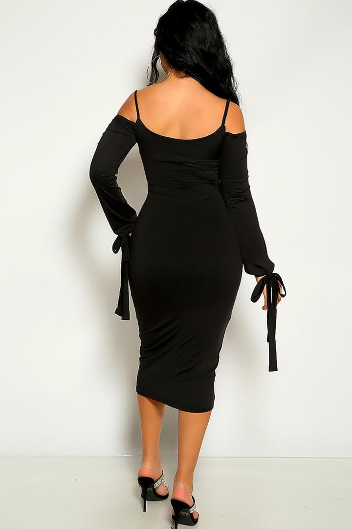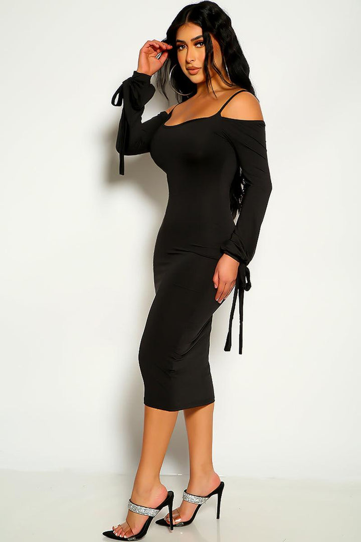 This Sexy Dress is can be dressed up or down for the look you want that day! Featuring; long Sleeve, scooped neckline, ruched, drawstrings, midi. Followed by a fitted wear. 90% Polyester, 10% Spandex.