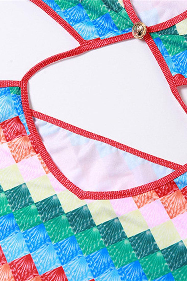 This Red Multi Printed Gold Button Cut Out Party Dress is a fashionable and eye-catching choice for all special occasions. Crafted with a luxe printed-cotton blend fabric for a comfortable and lightweight feel, it features gold button accents and an alluring cut-out design. Perfect for a wedding, cocktail party, or other celebratory event.