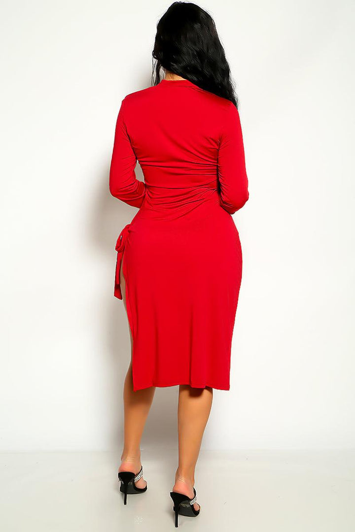 Wine Long Sleeve Side Tie Knot Party Sexy Dress