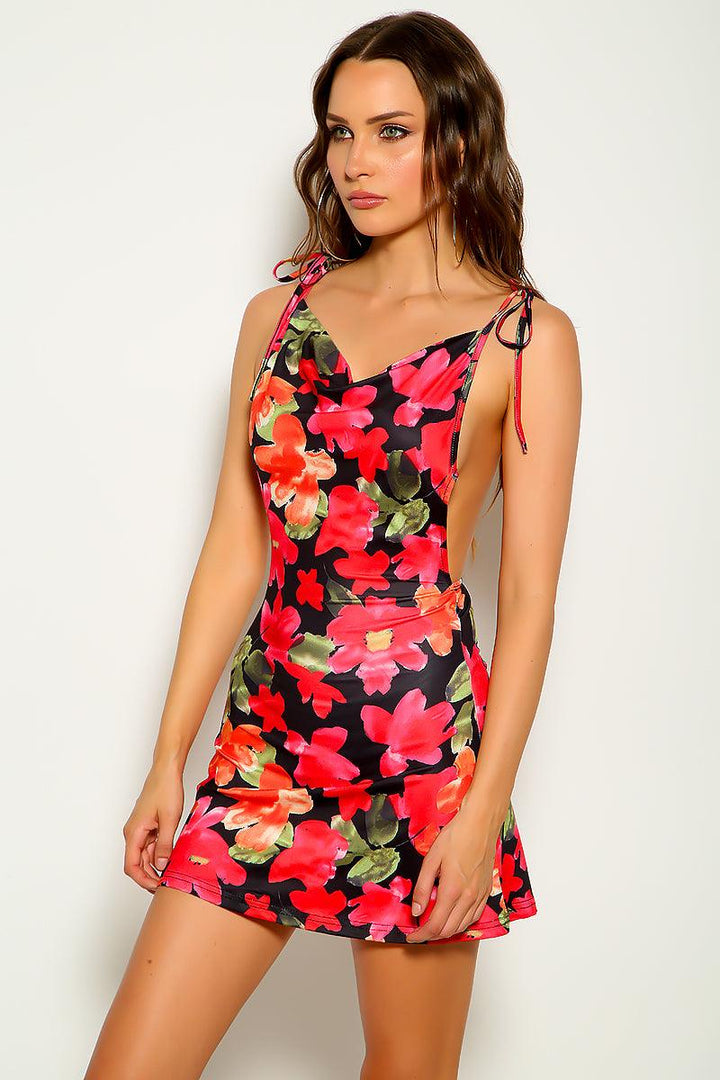 Show off your curves in this fabulous dress! Featuring; sleeveless, draped neckline, tie straps, two tone, floral print. Followed by a fitted wear. 90% Polyester 10% Spandex.