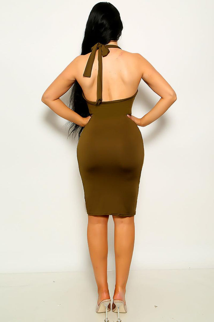 Show off your curves in this sexy dress! Featuring; sleeveless, scooped neckline, strappy, halter, backless, followed by a fitted wear. Stretch Fit.