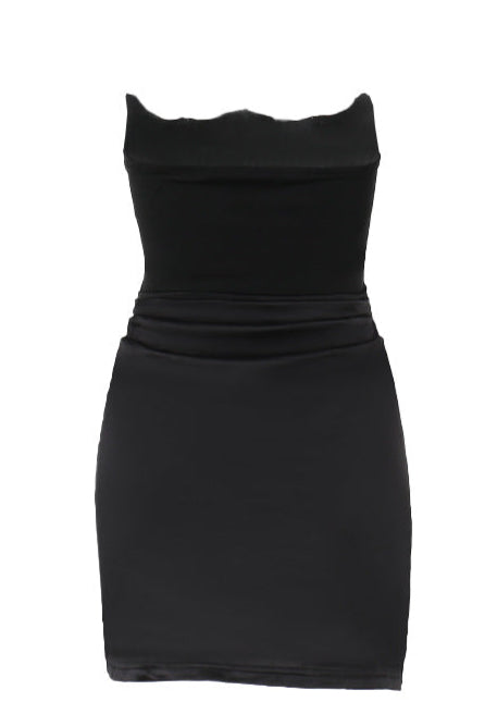 Black Boned Strapless Corset Ruched Waist Sexy Party Dress
