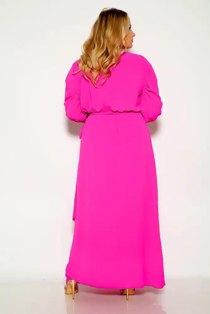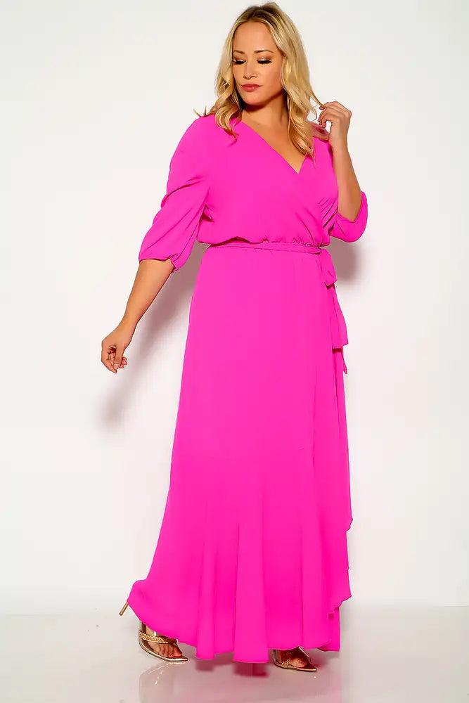 Fuchsia Quarter Sleeve Flowy Plus Size Maxi Dress