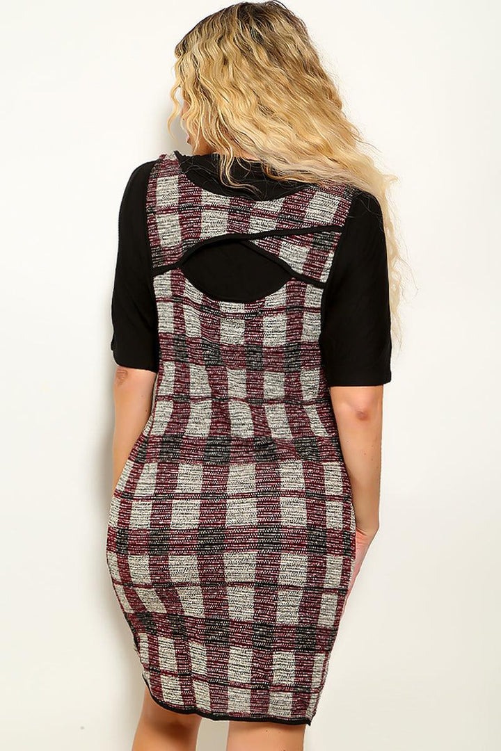 Show off your curves in this sexy dress! Featuring; round neckline, plaid design, layered over a white round neck top with midi sleeves, followed by a fitted wear. Stretch Fit.