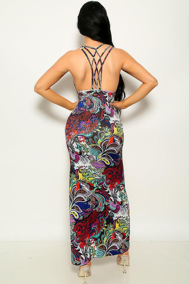 Blue Red Strappy Sleeveless Maxi Dress