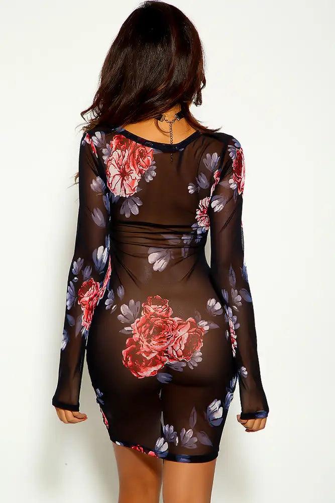 Floral Long Sleeve Ruched Mesh party Dress