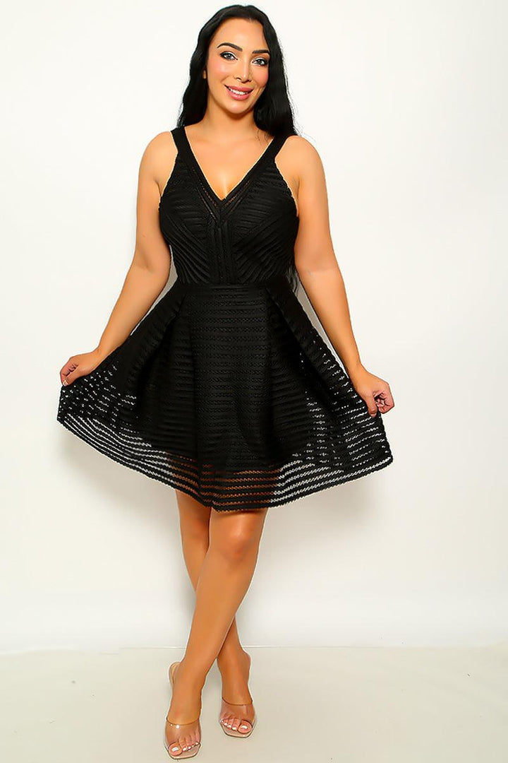 Black Netted Zip Up Sleeveless A-Line Cocktail Dress