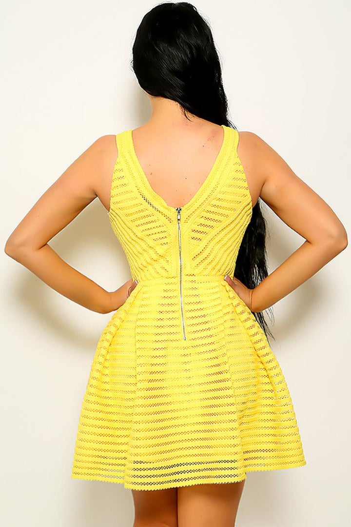 Yellow Netted Zip Up Sleeveless A-Line Cocktail Dress