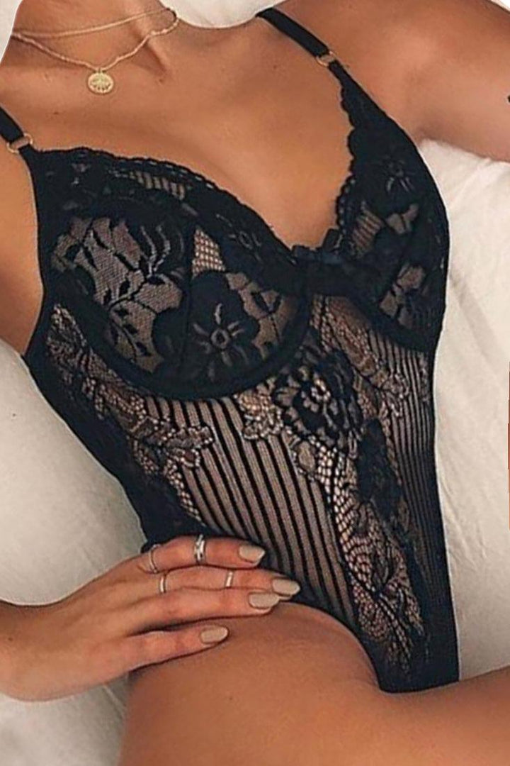 Black Mesh Lace Sleeveless Cheeky Lingerie Bodysuit