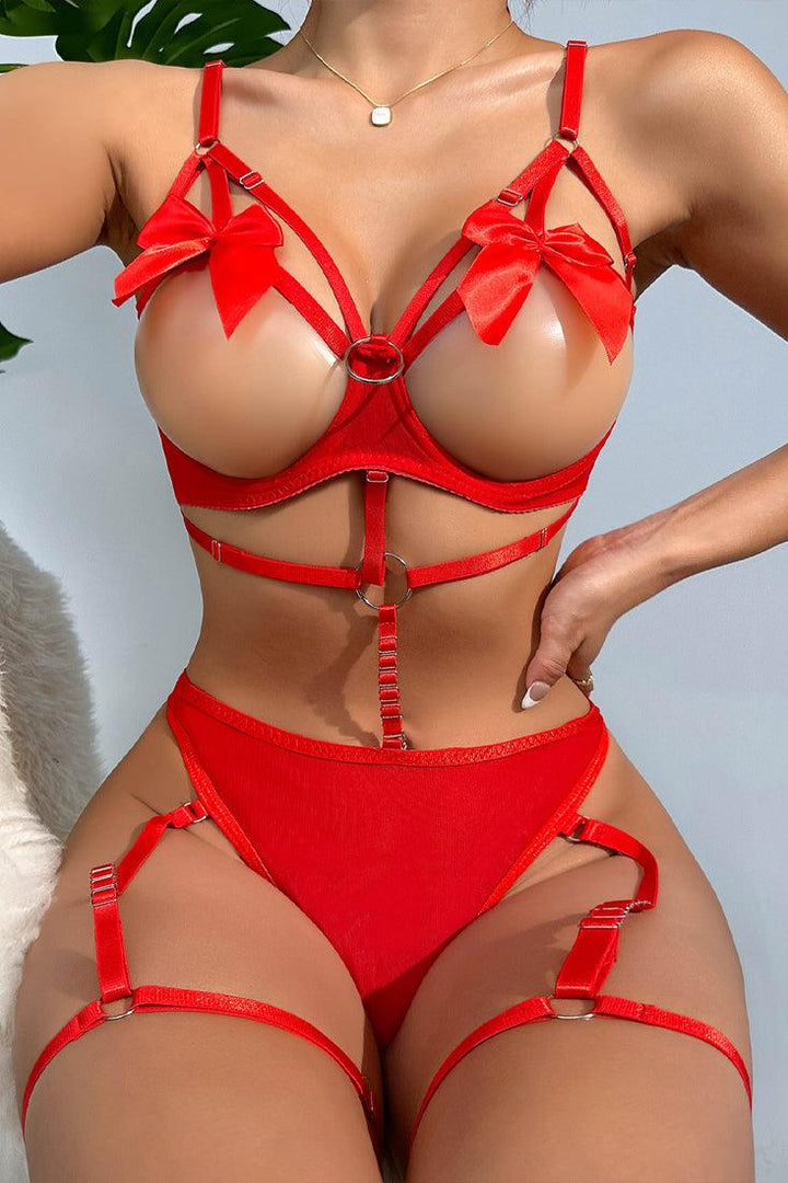 Sexy Red Strap Bow Tie Lingerie Set