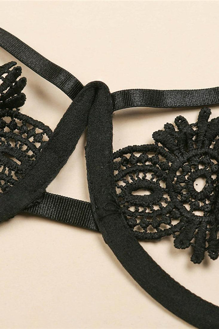 Be bedroom ready in this sexy lingerie set! Featuring; sleeveless bra, back hook closure, hollow out, lace detail, matching thong, followed by a fitted wear. Stretch Fit.