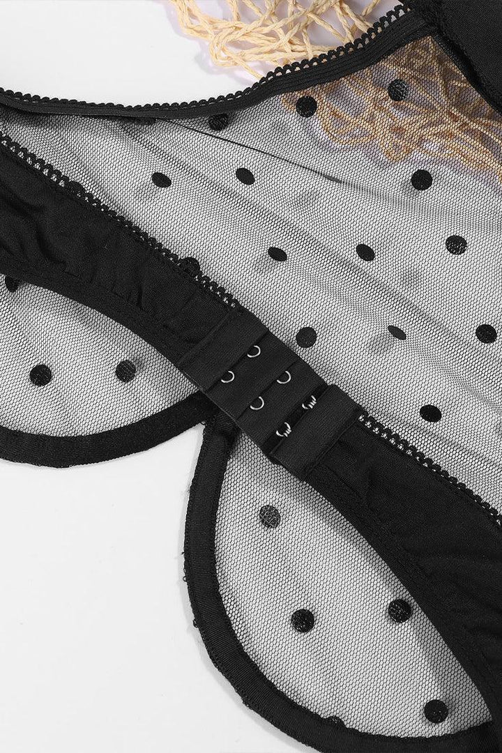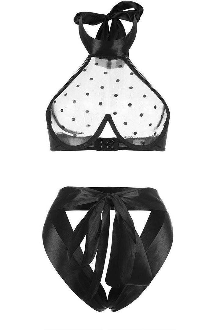 Black Ribbon Mesh Halter Sexy Lingerie 2 Pc Set