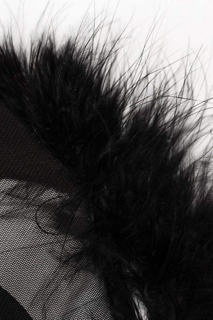 Black Fuzzy Trim Sheer Mesh Sleeveless Lingerie Bodysuit