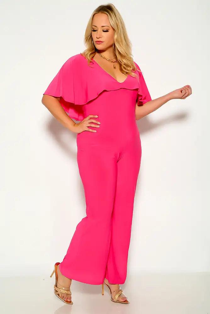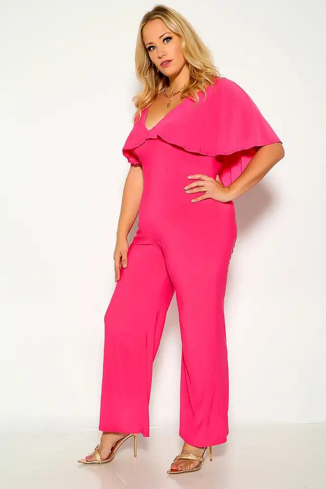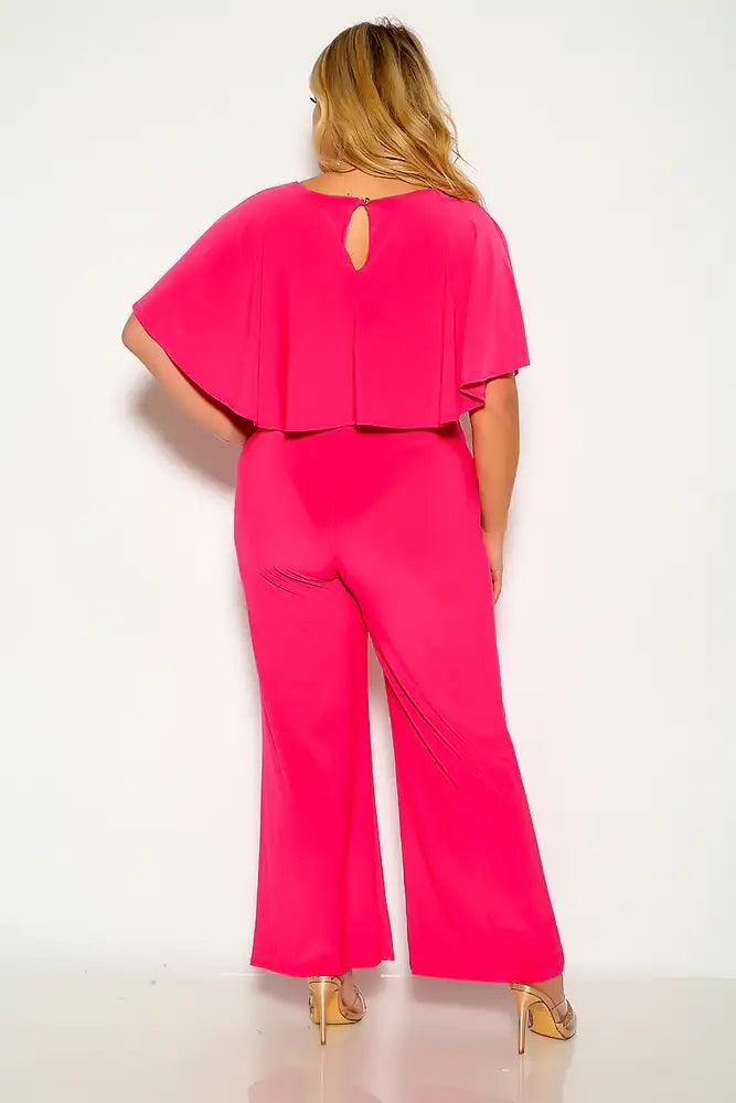 Fuchsia Draped Flared Dressy Plus Size Jumpsuit