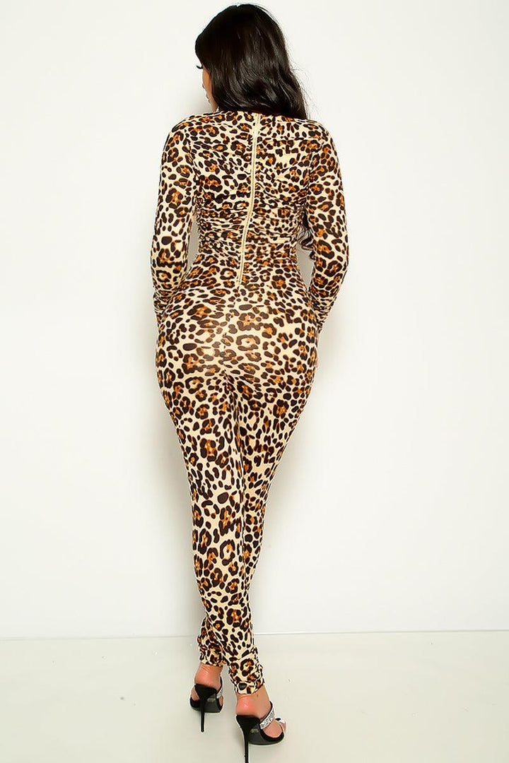 Sexy Leopard Zip Up Long Sleeve Jumpsuit