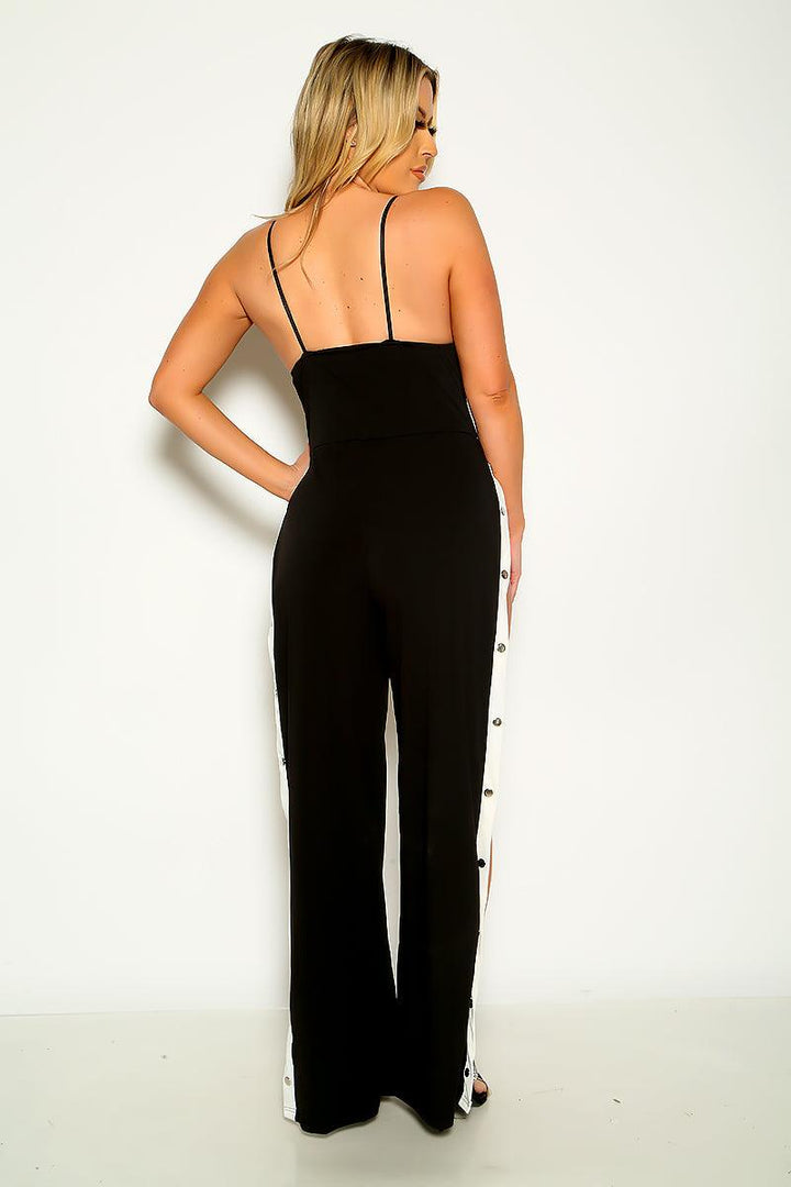 Black White Vertical Side Button Wide Leg Jumpsuit