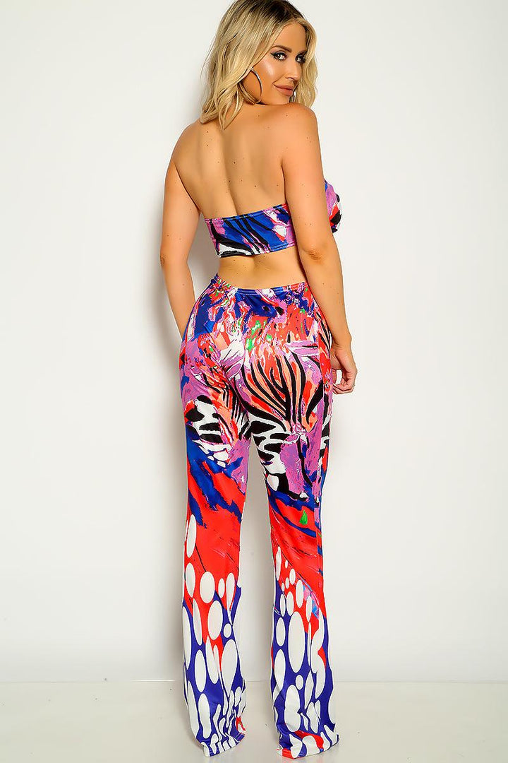 This sexy jumpsuit is perfect for a night out. Featuring; sleeveless, printed, two tone, halter, flared leg . Followed by a fitted wear. 90% Polyester 10% Spandex.