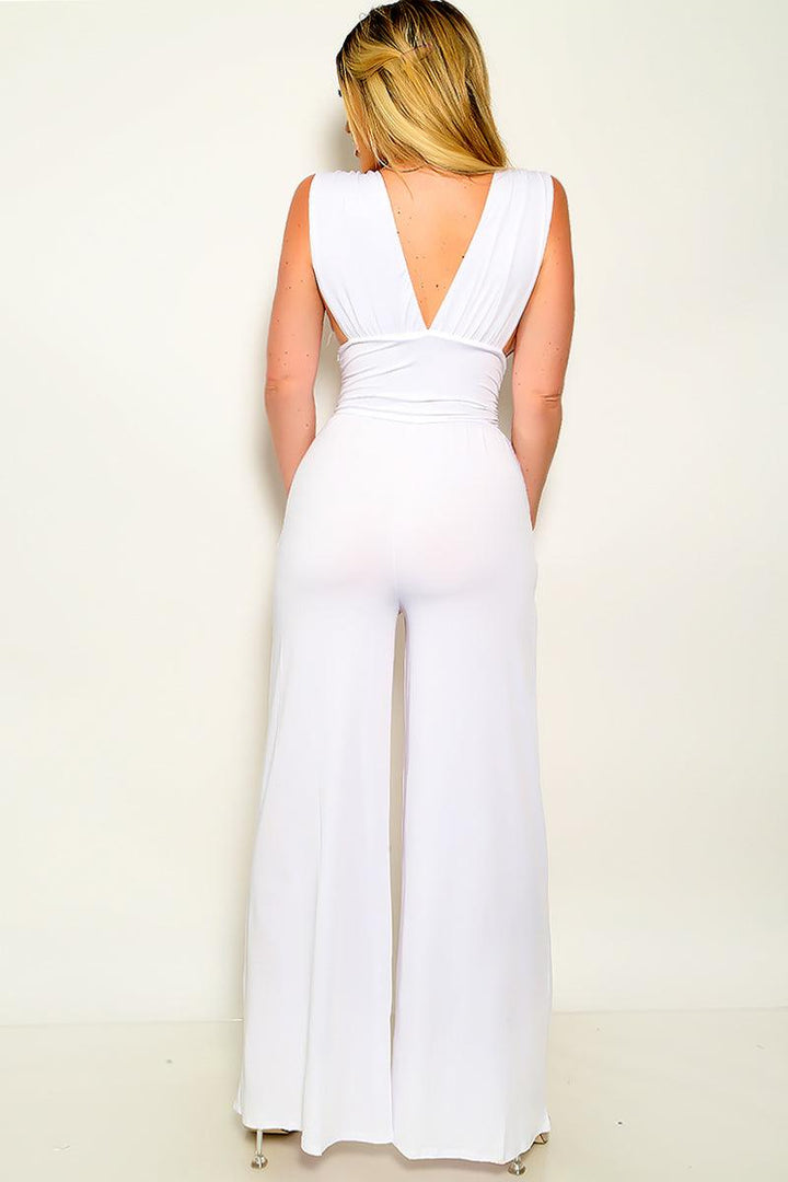 White V-Neck Wide Leg Sexy Jumpsuit
