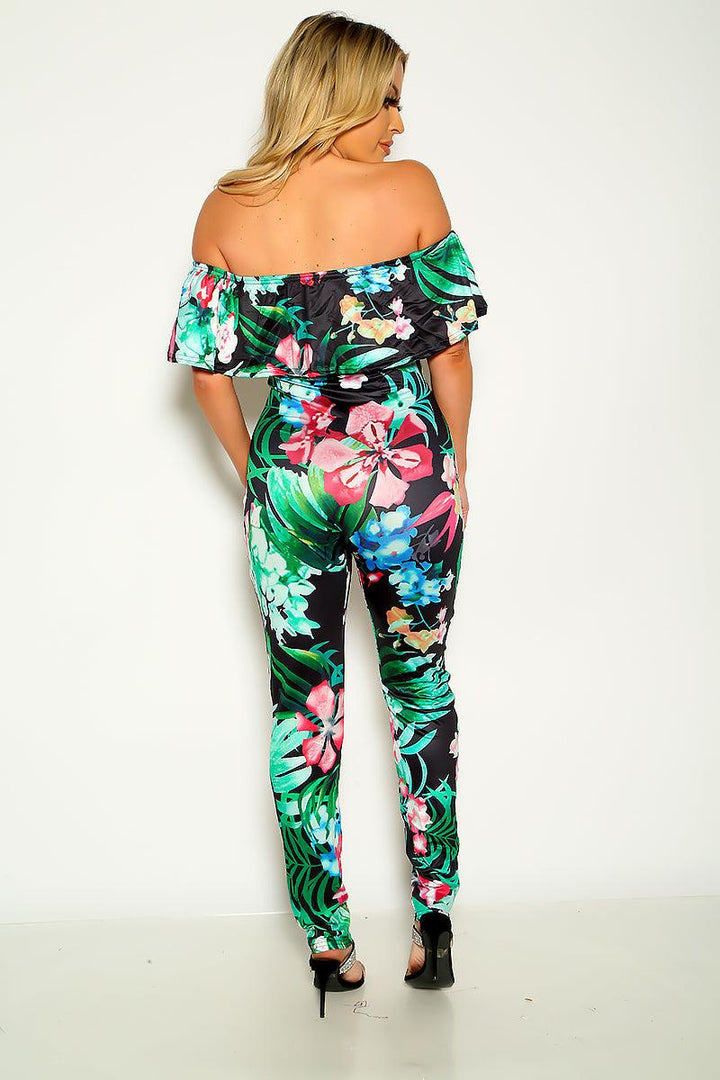 Show off your curves in this sexy jumpsuit! Featuring; off shoulder, ruffled trim, floral print design, followed by a fitted wear. Stretch Fit.
