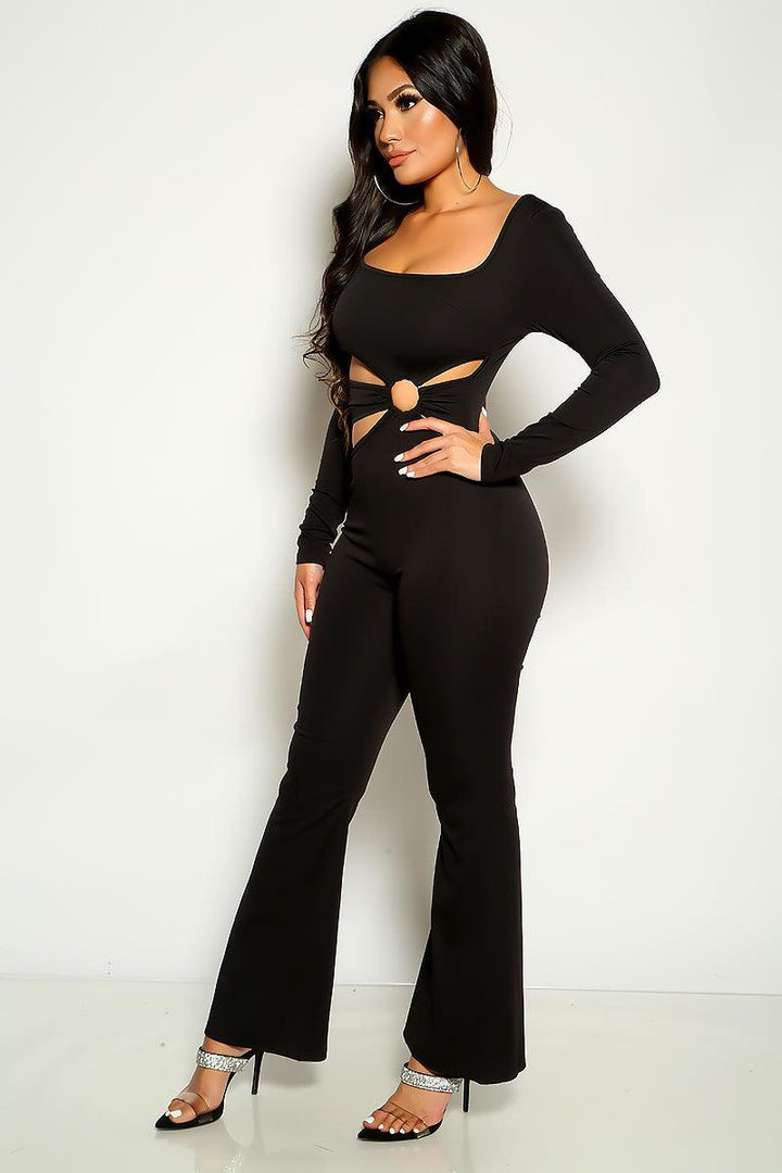 Black Long Sleeve Cut Out Flared Jumpsuit