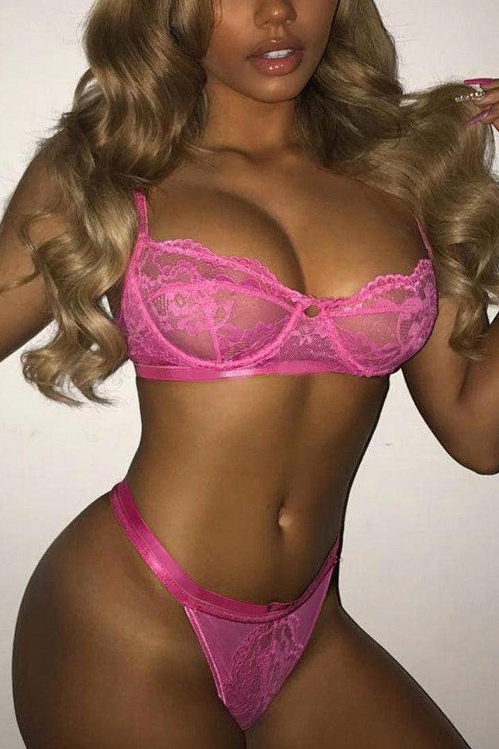 Pink Sleeveless Two Piece Lace Cheeky Two Piece Lingerie