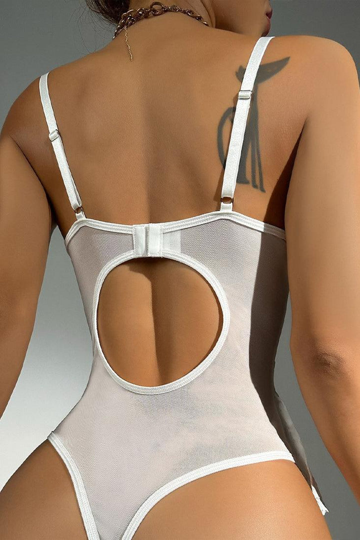 White Heart Flower Lace Ruffle Tutu Mesh Thong Garter Bodysuit Lingerie