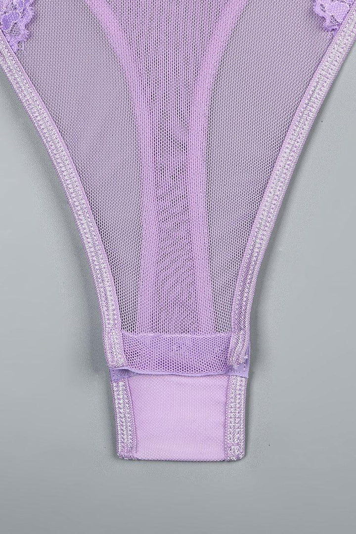 Lavender Lace Mesh Choker Strappy Thong Lingerie Sexy Bodysuit