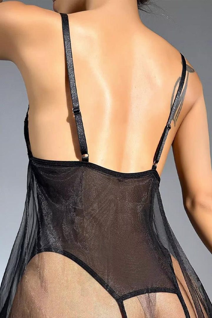 Black Lace Mesh Crotchless Thong Bodysuit Teddy Lingerie