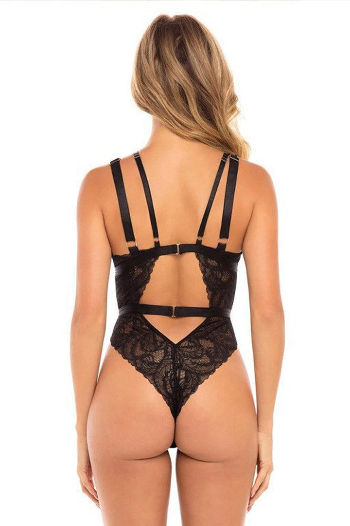 Black Strappy Lace Sexy Bodysuit Lingerie